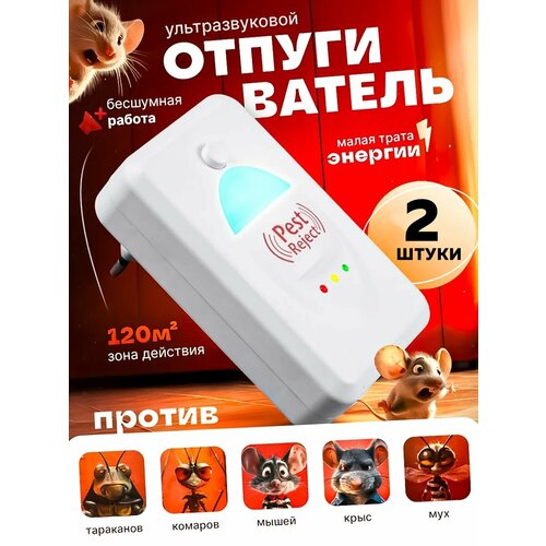 Отпугиватель насекомых и грызунов, крыс и мышей Pest Reject Пест Реджект, ультразвуковой, набор 2 штуки