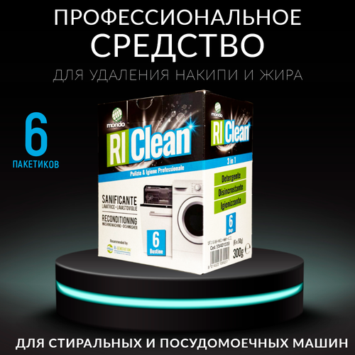 Очиститель для стиральных машин RI CLEAN 3 в 1 Чистящее средство удаляет запахи, накипь и бактерии в стиральной машине (6 пакетиков по 50 гр)