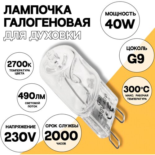 Галогенная лампочка для духовки 40W G9 2700k лампа освещения духового шкафа