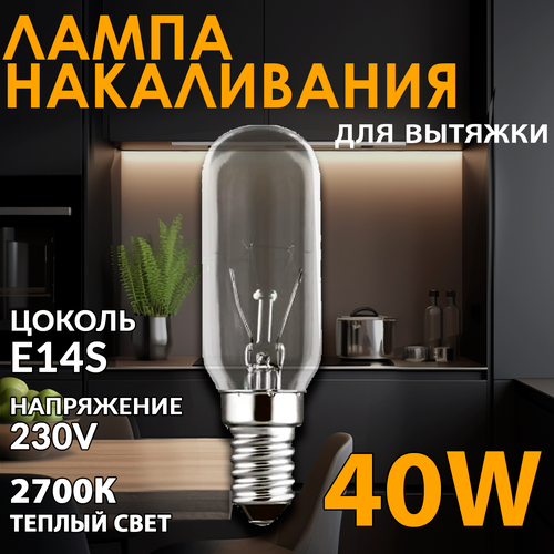 Лампочка накаливания для вытяжки E14S 40 Вт, 2700 К