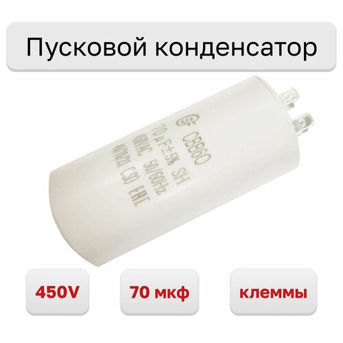 Пусковой конденсатор СВВ60 70 мкф с клеммами 450V, 1 шт.