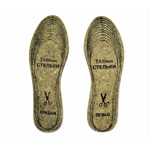 Стельки Вырезные теплые зимние, толстые, универсальные из войлока, шерсти для обуви, размер 36-45