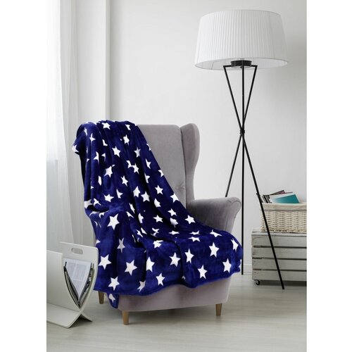 Плед Флисовый Синий звезды покрывало Плед на кровать мягкий плед 180х200 см