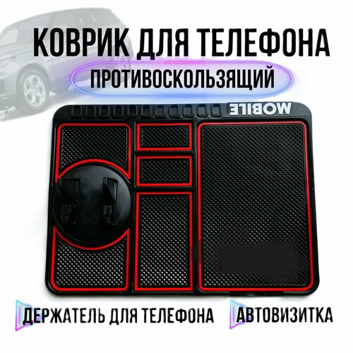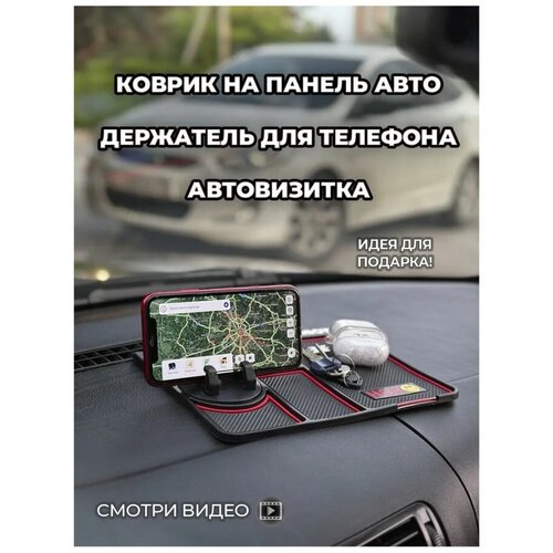 Автомобильный коврик на панель с держателем для телефона и автовизиткой