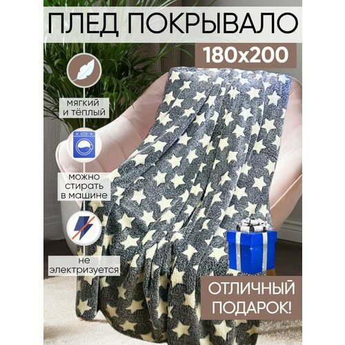 Плед Флисовый звезды покрывало Плед на кровать мягкий плед 180х200 см