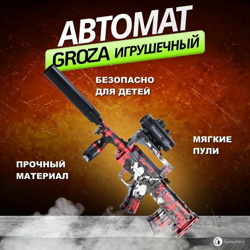 Игрушечное оружие, автомат детский с мягкими пульками Groza. Красный