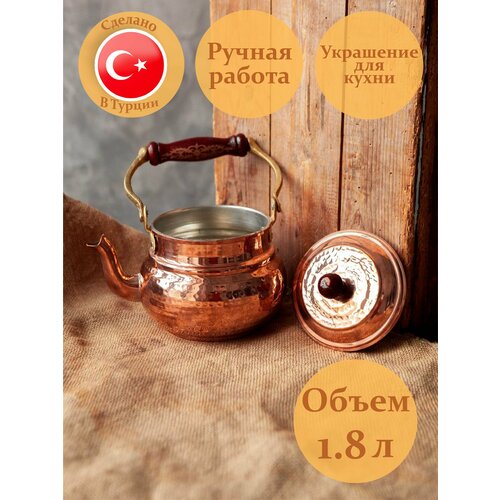 Турецкий медный чайник медный с деревянной ручкой 1,8 л