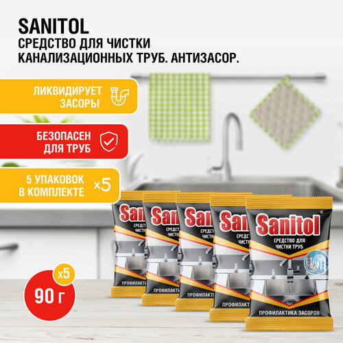 Sanitol / Антизасор для чистки труб / 90 г. 5 ШТ.