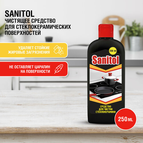 Sanitol / Чистящее средство для чистки стеклокерамики / Нержавеющей стали и металла 250 МЛ.