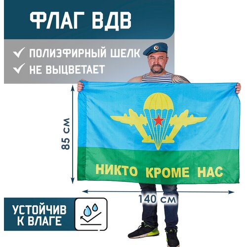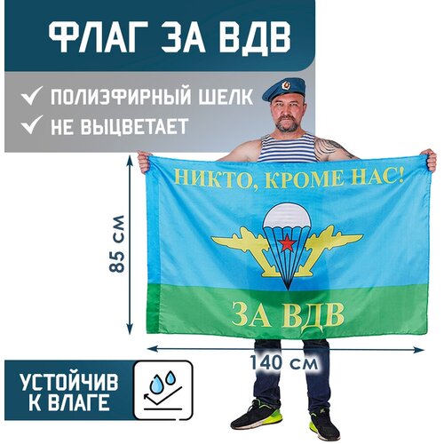 Флаг ВДВ - НИКТО КРОМЕ НАС! 85х140 см, полиэфирный шелк, размер большой