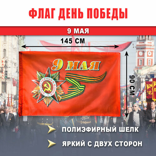 Флаг 9 мая День Победы 90х145 см, полиэфирный шелк, размер большой