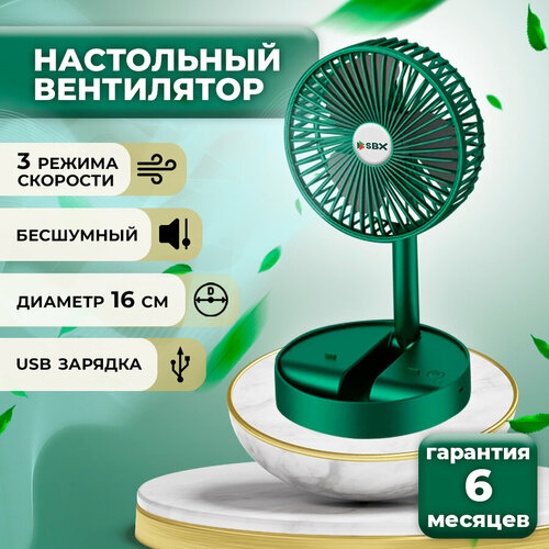 Вентилятор SBX настольный, портативный, беспроводной, бесшумный, 3 скорости, зеленый