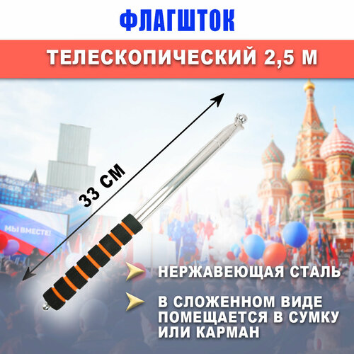 Флагшток оранжевый уличный складной-телескопический 2,5 м