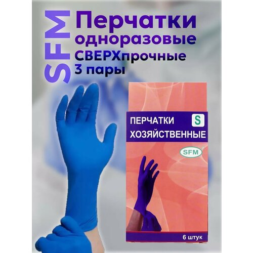 Перчатки Латексные сверхпрочные (HIGH RISK), размер S (мал), 3 пары, SFM, Германия; синие