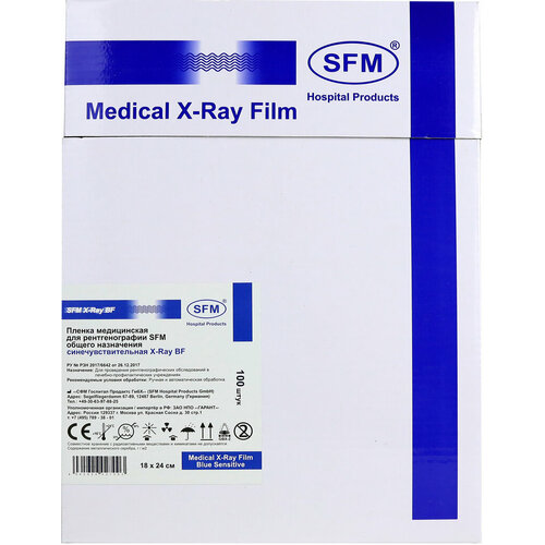 Рентгеновская пленка синечувствительная, SFM X-Ray BF, комплект 100 л, 18х24 см, 629027