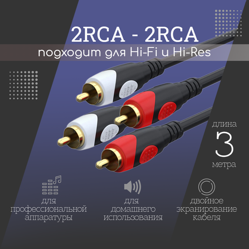 Аудио кабель jack 3.5 мм (мама) на 2 RCA 3 метра для подключения колонок и музыкальной аппаратуры