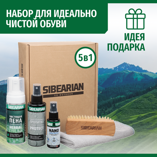 Подарочный набор для ухода за обувью SIBEARIAN PROTECT & CLEAN SET 5 в 1: 2 пропитки, пена для обуви, щетка и салфетка