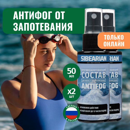 Антифог спрей от запотевания для очков для плавания, подводных и горнолыжных масок, визоров SIBEARIAN ANTIFOG 50 мл 2 шт набор