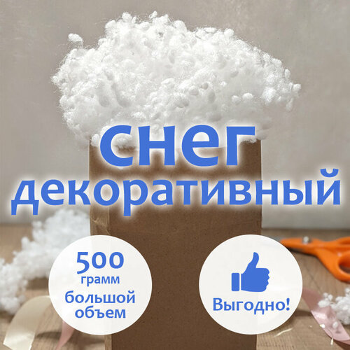 Пушистый декоративный снег для новогоднего оформления интерьера, витрины, ёлки, праздника 0,5 кг