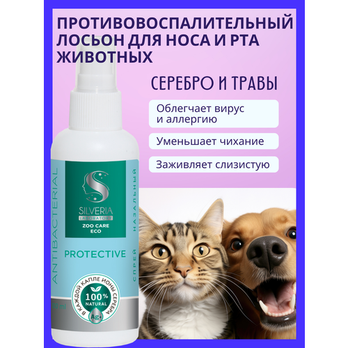 Антибактериальный противовирусный спрей назальный с ионами серебра для животных PROTECTIVE от SILVERIA Silveria