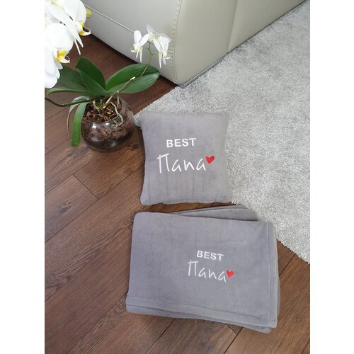 Подарочный набор "Идеальный мужчина" : декоративная подушка 30х30 см и плед 150х150 см с машинной вышивкой