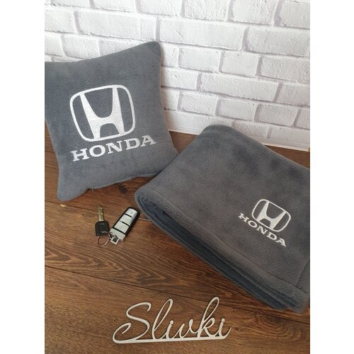 Автомобильный комплект с вышивкой логотипа "Honda": подушка 30х30 см и плед 150х150см