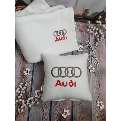 Автомобильный комплект с вышивкой логотипа Audi: подушка 30х30 см и плед 150х150см