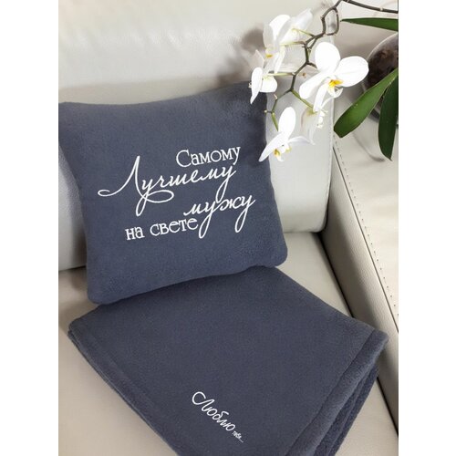 Подарочный набор мужу : декоративная подушка и плед "Самому лучшему мужу на свете"
