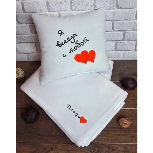 Подарок Влюблённым : декоративная подушка и плед с вышивкой "Я всегда с тобой"