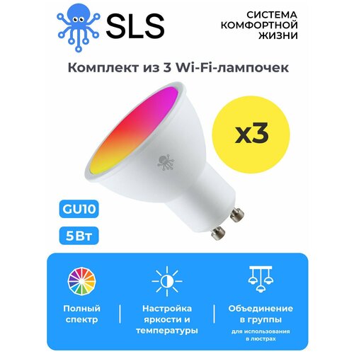 Комплект лампочек SLS (3 штуки)/LED-08/RGB/GU10/лампочка WiFi/лампочка умный дом/умные led лампочки/умная лампочка gu10