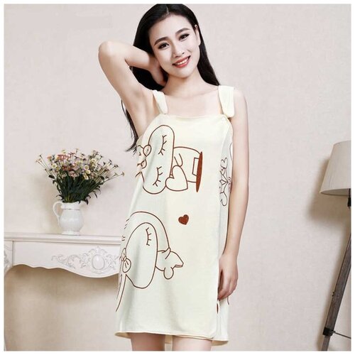 Полотенце-халат банное женское на кнопках светло-бежевое