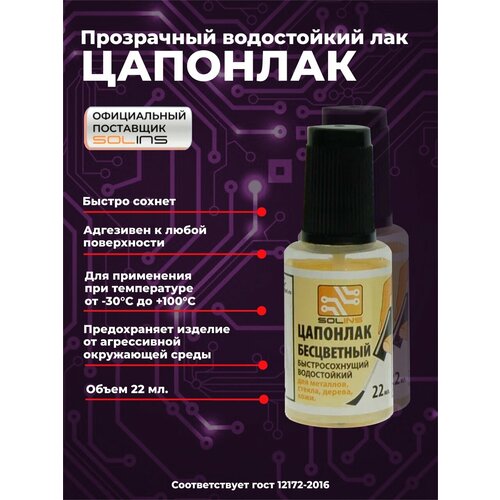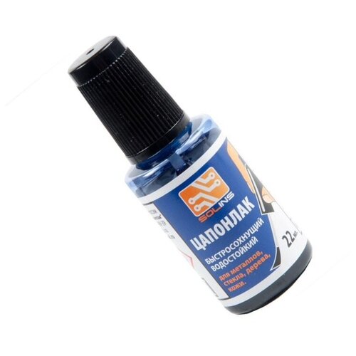 Цапон лак Solins быстросохнущий водостойкий, защитный для металла, стекла (ламп), дерева, печатных плат, цапонлак защита от коррозии, бесцветный 22 мл