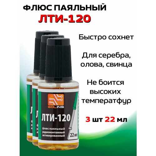 Флюс для пайки ЛТИ-120, 22мл 3 шт с кисточкой