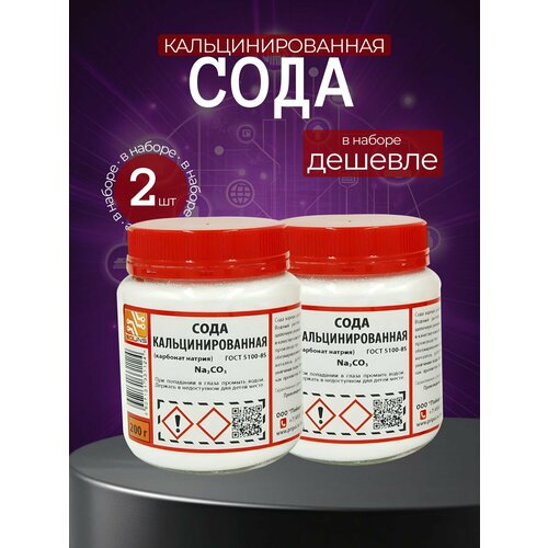 Сода кальцинированная (карбонат натрия) SOLINS Na2CO3, моющее чистящее средство, обезжириватель / Универсальный очиститель для чистки и мытья полов, кристаллический порошок, набор 2 шт. по 200 г