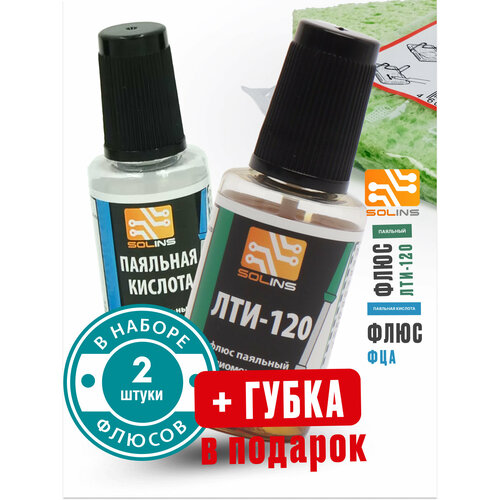 Набор флюсов ЛТИ-120/ФКСп с губкой для очистки жала паяльника