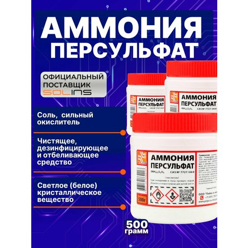 Аммония персульфат Solins (NH4)2S2O8, чистящая соль окислитель для травления меди на печатных платах / Отбеливающее и дезинфицирующее средство / Очиститель, отбеливатель, 500 г