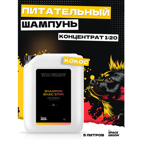 Шампунь для собак универсальный Basic Star #2 идеально питает, увлажняет и восстанавливает структуру волоса, для всех пород, Space Groom, 5 литров
