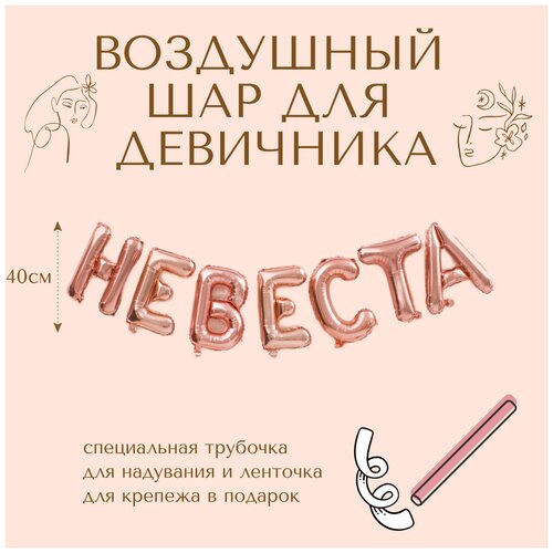 Воздушный шар "Невеста" для девичника или свадьбы, розовый, 40 см