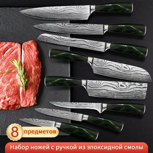 Набор кухонных ножей Кухонный нож универсальный 5 ножей(Волшебно зеленый) русский