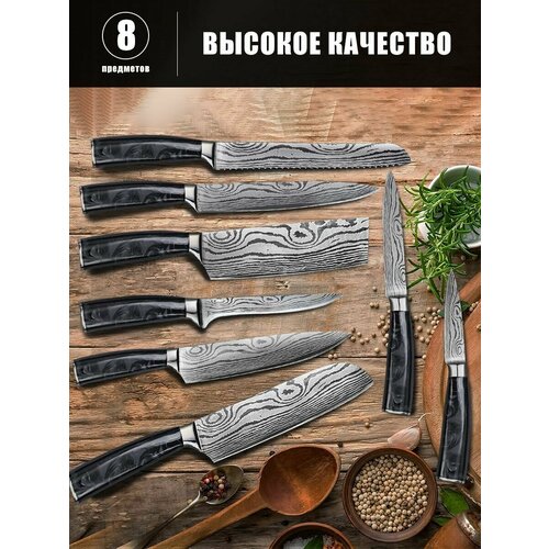 Набор кухонных ножей SPETIME/набор кухонных ножей из 8 частей/Нержавеющая сталь 50CrMoV15