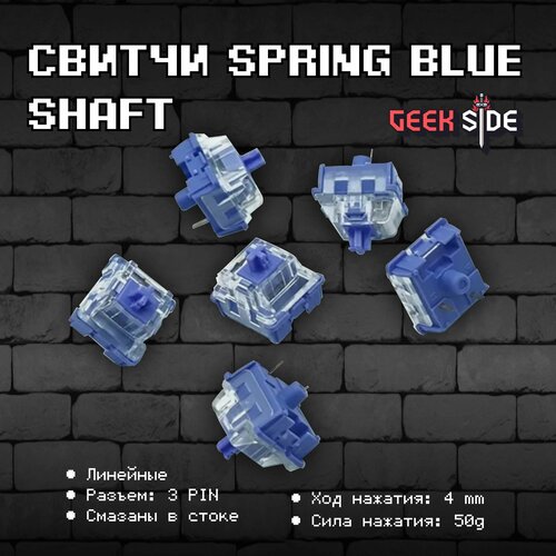 Линейные переключатели (свитчи) для клавиатуры Spring Blue Shaft Custom 10 шт, линейные, 3-pin, смазаны, 65 грамм