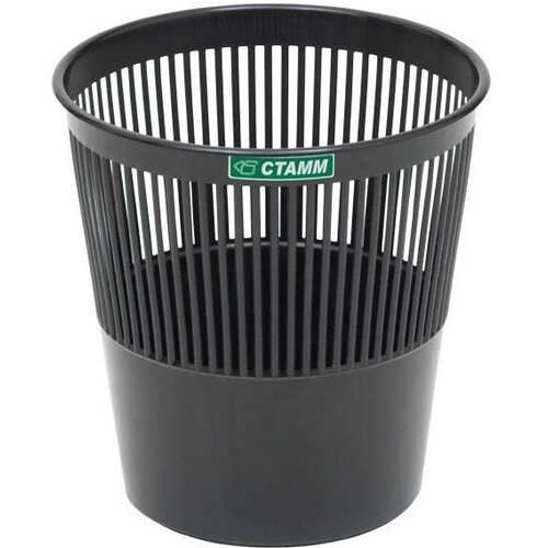 Корзина для бумаг 9л Стамм, круглая сетчатая, пластик, черная (КР21), 16шт.