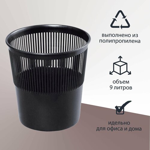Стамм Корзина для бумаг и мусора Стамм, 9 литров, пластик, сетчатая, чёрная