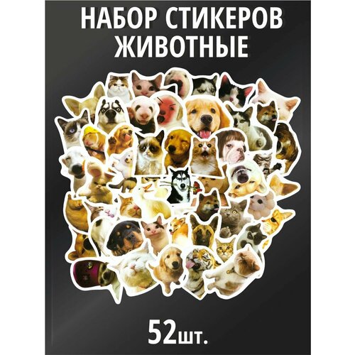 Стикеры наклейки на телефон 52 шт - милые животные, котики, собачки, мем