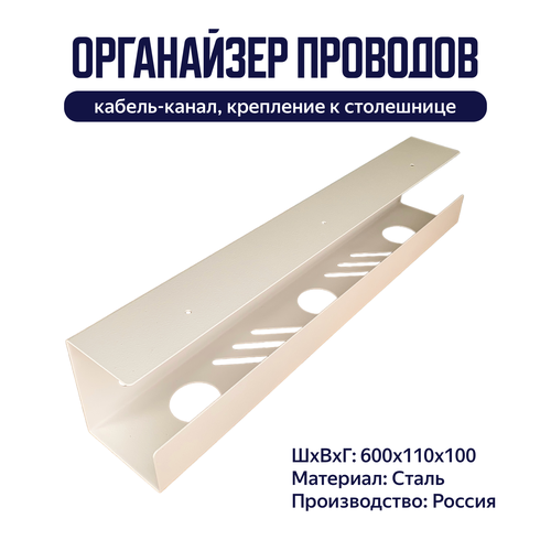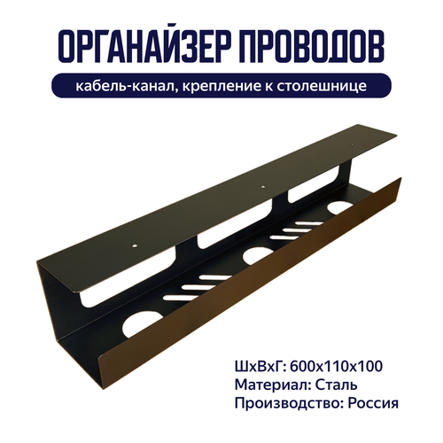 Органайзер для проводов / держатель сетевого фильтра под стол 600*110*100 мм