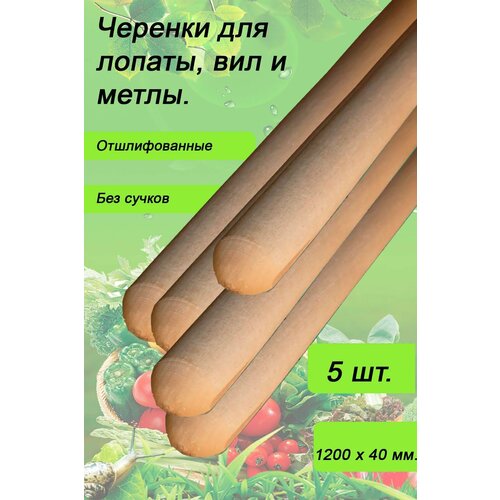 Черенок 1,2 м для садового инвентаря шлифованный, диаметр 40 мм, 5 шт.