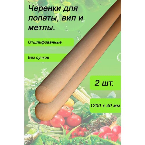 Черенок 1,2 м для садового инвентаря шлифованный, диаметр 40 мм, 2 шт.