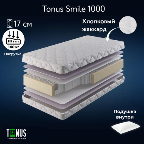 Матрас Tonus Smile 1000, Независимые пружины, 75х180 см
