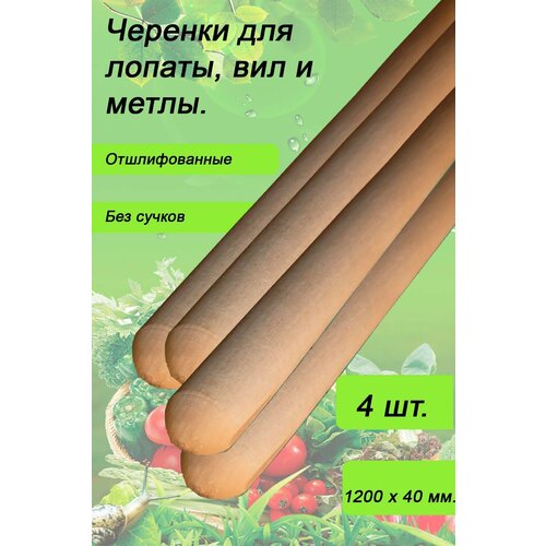 Черенок 1,2 м для садового инвентаря шлифованный, диаметр 40 мм, 4 шт.