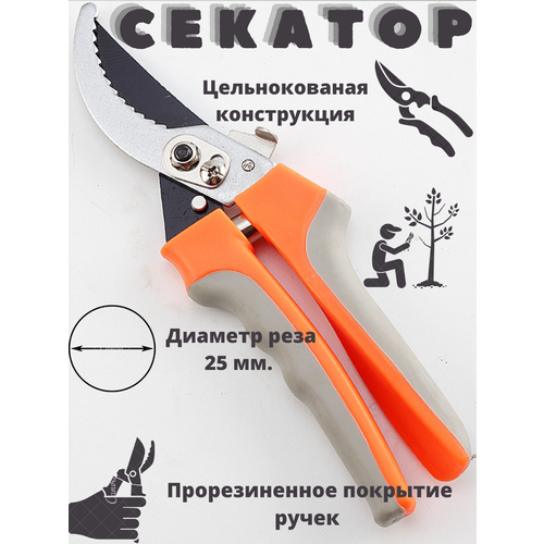 Секатор садовый универсальный цельнокованый контактный профессиональный для сада огорода и дачи